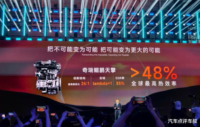 在10月18日举办的2025奇瑞全球创新大会上,奇瑞再次展出了热效率高达48%的鲲鹏天擎发动机。奇瑞执行副总裁、CTO高新华自信地表示:“鲲鹏动力热效率突破48%,中国的发动机技术能成为全球第一。”